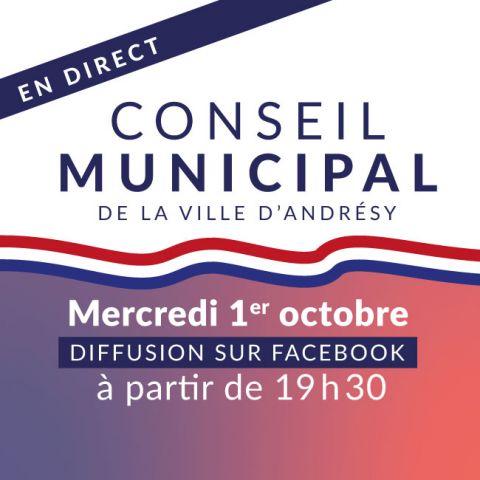 Assistez ou suivez en direct le prochain municipal du 1er octobre 2025, à 19h30, à l'Hôtel de Ville ou sur le Facebook de la Ville.