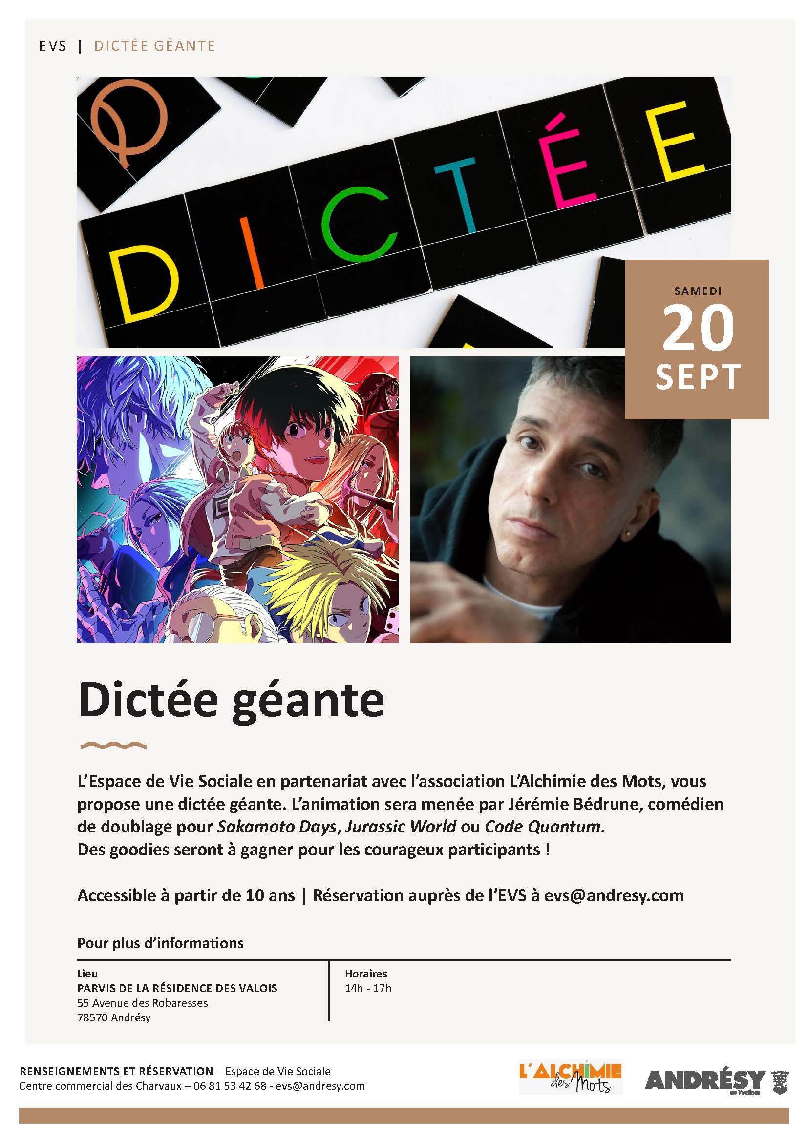 Une dictรฉe gรฉante et originale organisรฉe par l'Espace de vie socialeย en partenariat avec l'association l'Alchimie des mots.