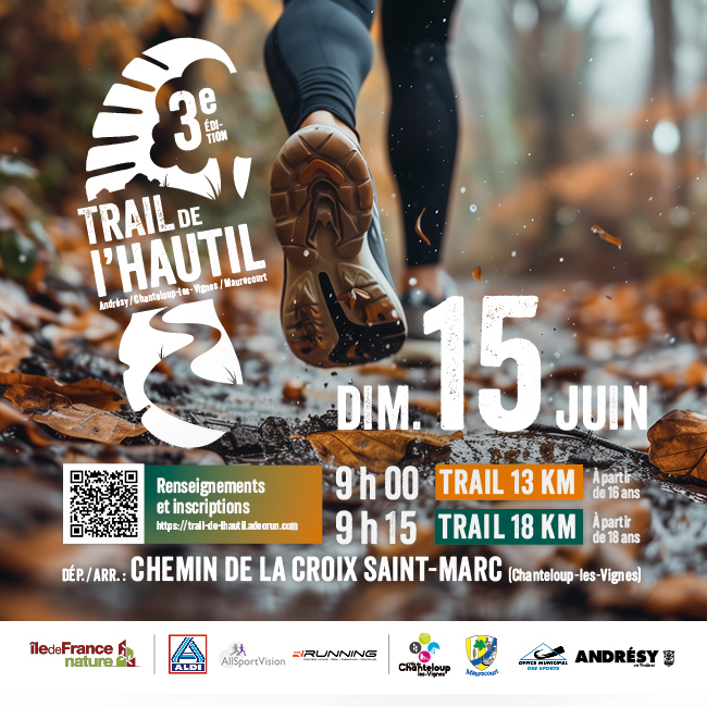 Participez à la 3e édition du Trail de l’Hautil, une course nature de 13 km (départ à 9 h) ou 18 km (départ à 9 h 15) dans la forêt de l’Hautil, organisée par les villes d’Andrésy, Chanteloup-Les-Vignes et Maurecourt, en partenariat avec l’OMS d’Andrésy et déclarée auprès de la FFA.